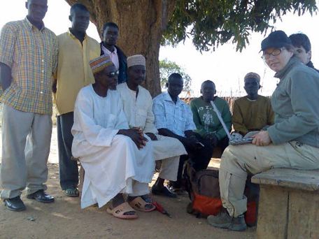 Talking to the Berom chief under a mango tree in the village of Shonong, explaining our intentions.