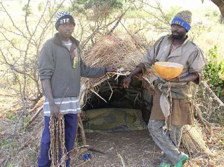 Oldest brother Maikudi has a closer look at the GPS device Hassan is wearing