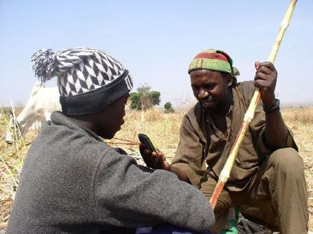 The Fulani men I went walking with are looking at the pictures I made with Esther’s camera. So I took a picture of that with the cellphone. How meta!