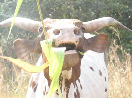 Hassan on his favorite cow. Maikudi behind it.