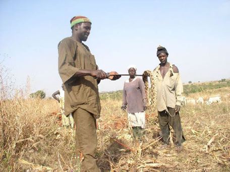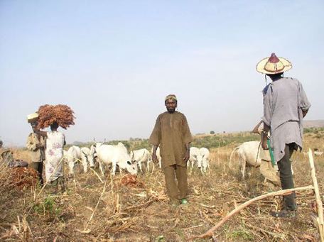 One of the things that struck me most during that day was the close interaction of agricultural life and semi-nomadic pastoralism. As soon as fields were harvested, the Fulani could access the land for their cattle to graze. The cows both strip the land clean of remaining plants and shit on it, so it is fertilized again. Here sorghum is being harvested.